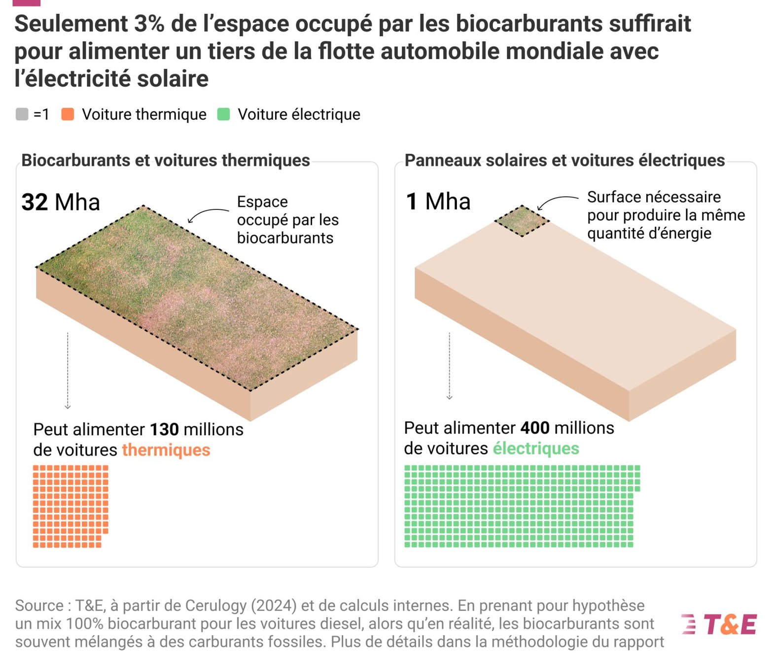 1 ha de panneaux solaires produit 1000 MWh, quand 1 ha de betterave produit 30MWh (30 hl de biocarburant).