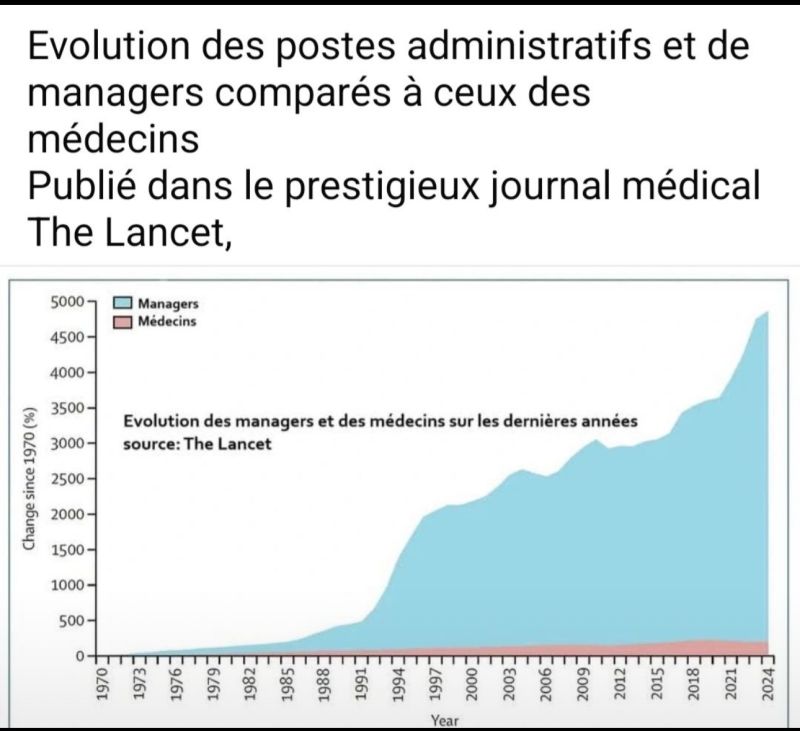 Ceci s’est traduit en effet par une augmentation du nombre non pas de médecins, mais des postes intermédiaires : techniciens, pharmaciens, infirmiers + tout le personnel administratif en soutien (augmentation de 50 à 100 %).