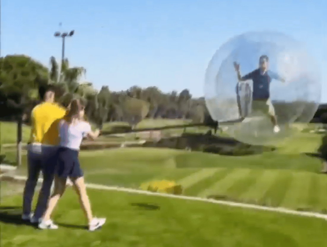 🏌♂️ 🏌♀️ En effet, dans la vidéo, c'est le couple qui manie le club de golf conjointement. Il faut effectivement une grande force pour faire décoller un adulte pour qu'il vole si haut !