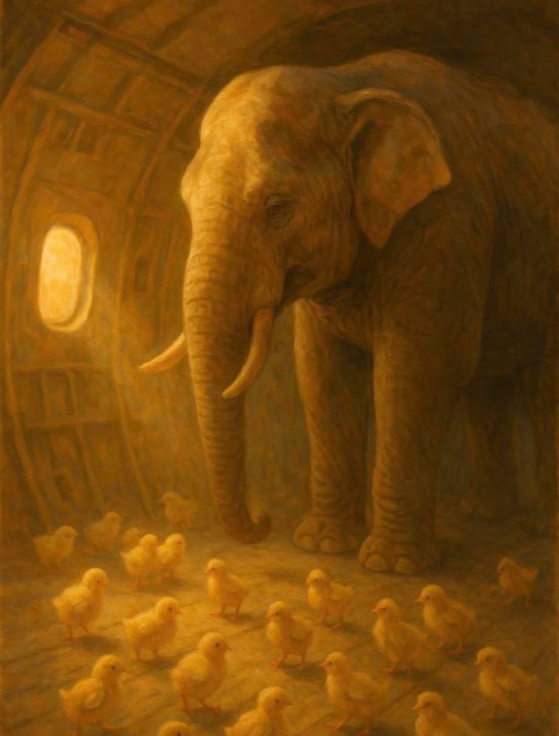 🛫 Lorsqu’on doit transporter un éléphant 🐘 en avion – par exemple de l’Inde vers les États-Unis – on place avec lui dans la cage… des poussins ! 🐥