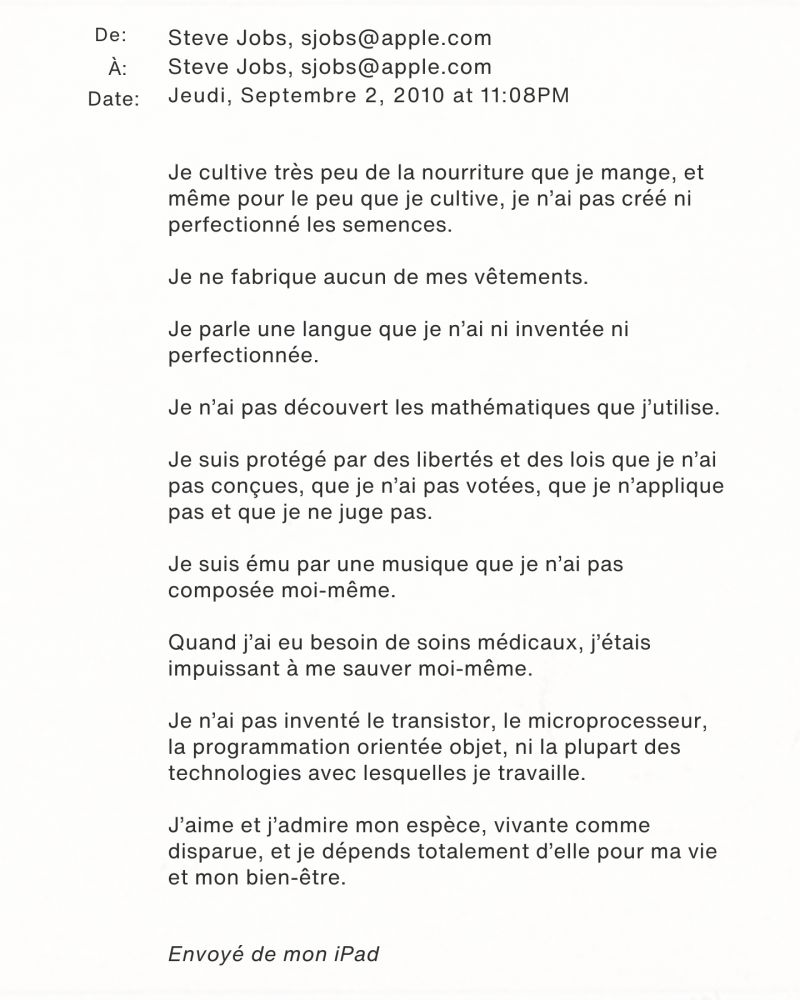 Cet email a été partagé par Laurene Powell Jobs, son ex-femme.