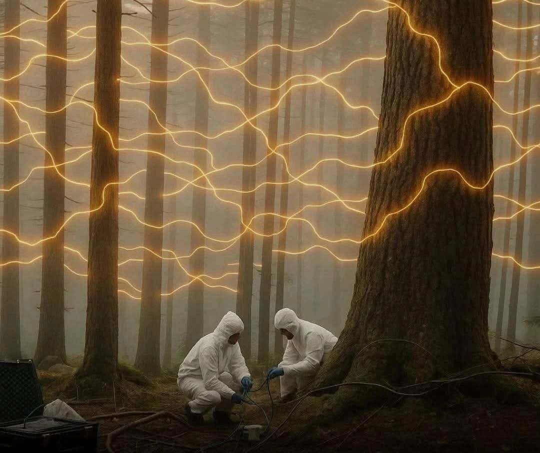 À l'aide de capteurs personnalisés installés sur des arbres vivants, voire de vieilles souches, les scientifiques ont observé des variations coordonnées de tension au sein des cellules, appelées potentiels bioélectriques. Ces signaux, transmis par les flux ioniques à travers les membranes, indiquent que les arbres pourraient communiquer et s'adapter collectivement.